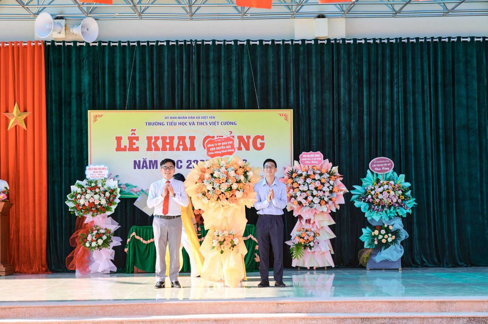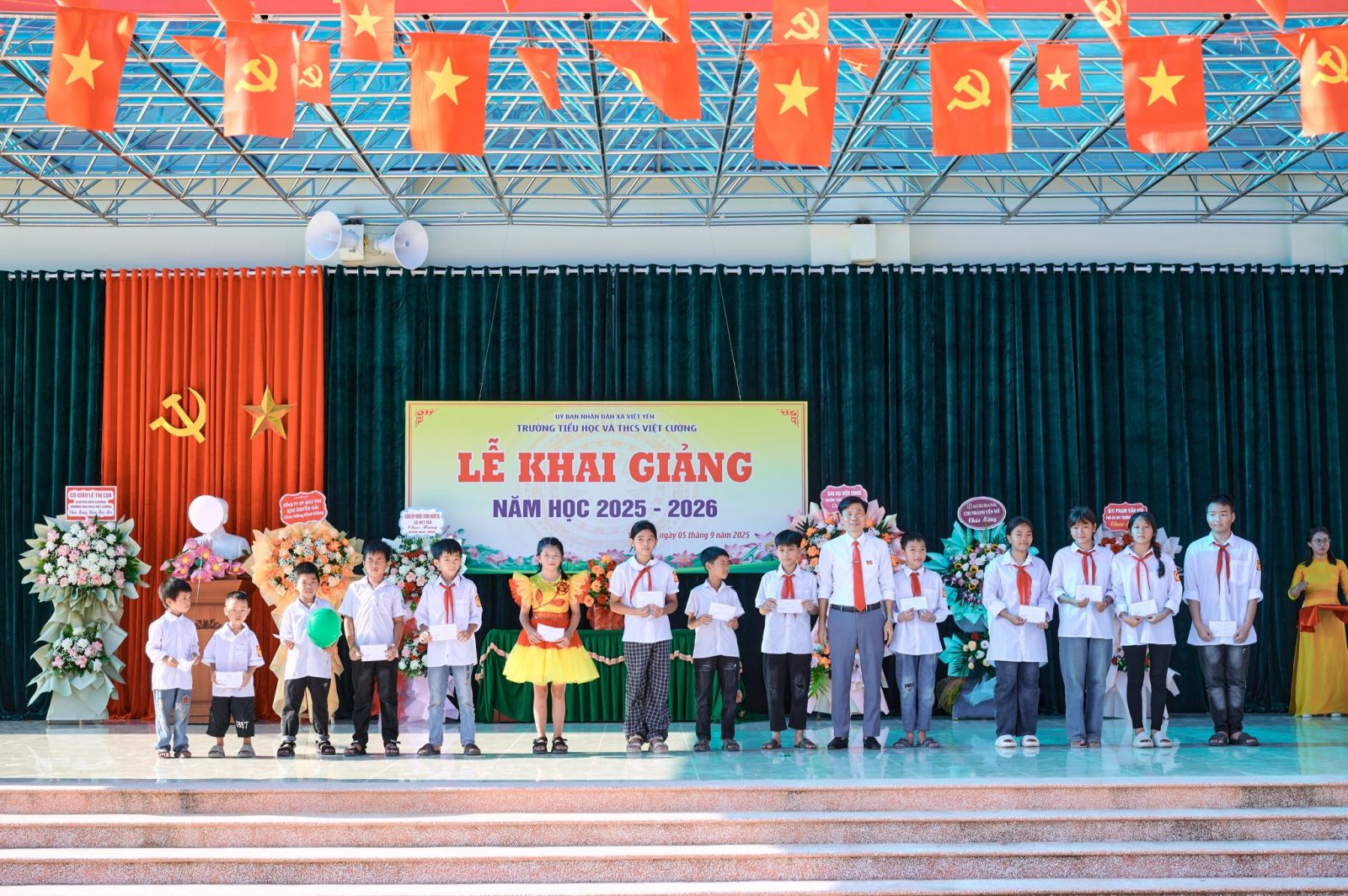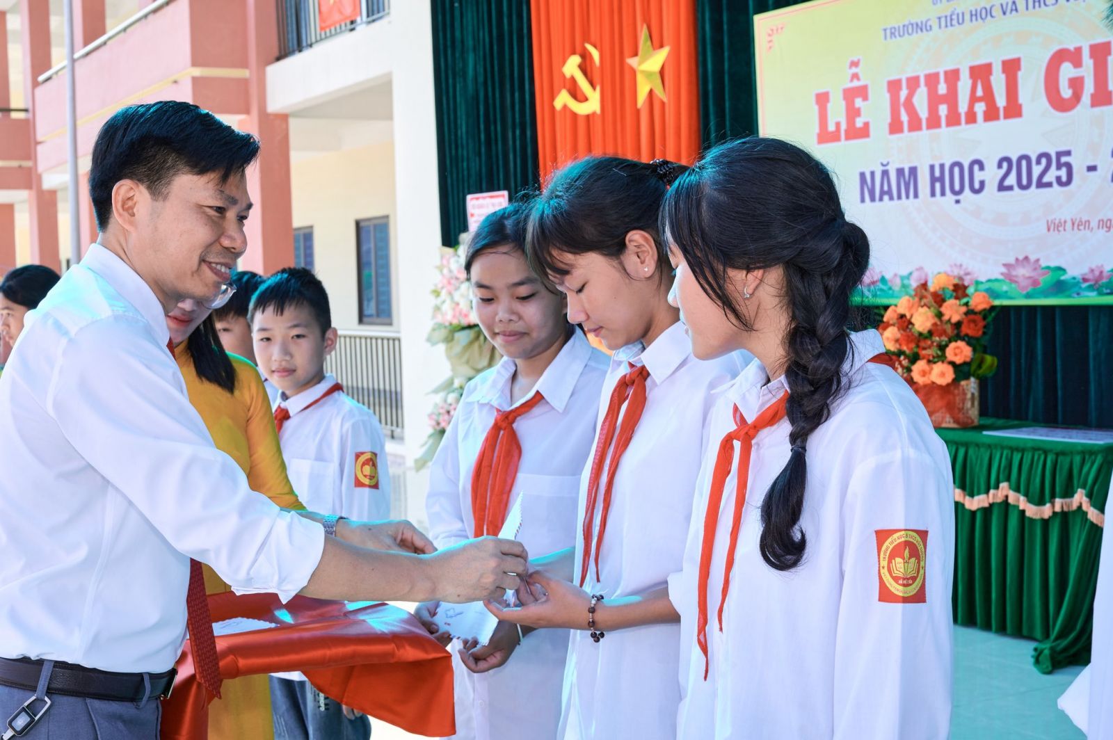 Đặc biệt, trong buổi Lễ Khai giảng, đã có 24 em học sinh vượt khó, vươn lên trong học tập được nhận những phần quà đầy ý nghĩa từ Đảng ủy – HĐND – UBND – UBMTTQ xã Việt Yên và Ngân hàng Agribank. Những phần quà này không chỉ mang giá trị vật chất mà còn là nguồn động viên tinh thần to lớn, tiếp thêm nghị lực để các em phấn đấu học tập và rèn luyện tốt hơn trong năm học mới.